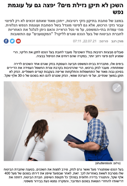 ראשי » דיני נזיקין » השכן לא תיקן נזילת מים? יפצה גם על עוגמת נפש