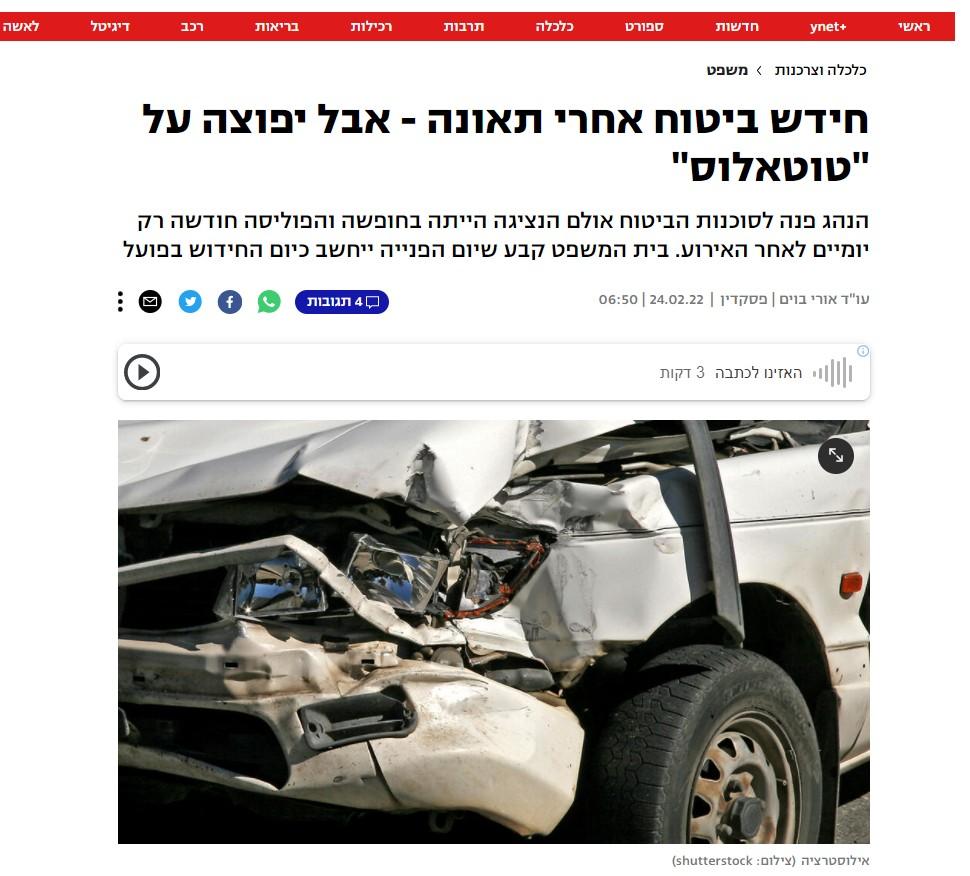 ראשי » דיני ביטוח ופנסיה » חידש את הביטוח יומיים אחרי תאונה – ויפוצה על ה"טוטאלוס"